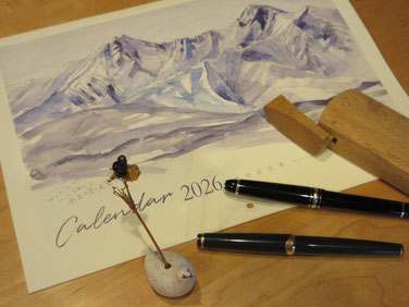 お部屋の壁に山の絵の小窓を〜 小さいカレンダーは机の片隅、パソコンの脇に〜