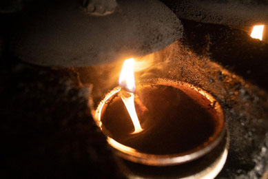 ここで言う“炎”とは和ろうそくの特別なゆらぎのある灯火のことです。和蝋燭の原料はウルシ科のハゼの実です。実を収穫する人は「ちぎりこさん」と言い、採った実を搾って蝋にします。大量に出る搾り滓は藍染の色を出す発酵の為の熱源として使います。…というように、一つのものが生まれる手仕事の裏には多くの職人さんの手がかかっていて、また仕事そのものが次の仕事や他の仕事に繋がっていき無駄がありません。